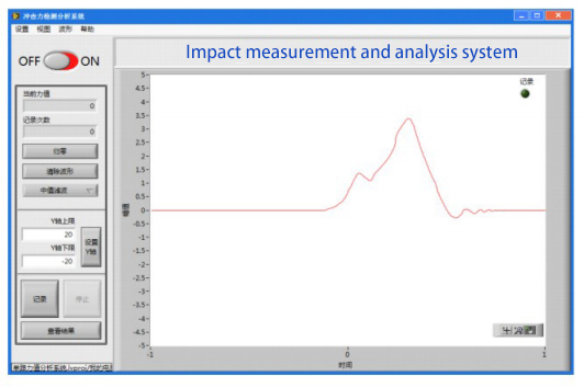 2、传感器的电信号传输到高速测量分析仪中,测量仪通过信号调理器将测力传感器输出的电信号放大成为容易采集测量的标准模拟信号,然后通过AD模块将电压转换至数字信号,并通过USB2.0高速接口与电脑通讯,AD模块采集频率上限可达100kHz(即每秒钟采集10万次),从而可以实现电脑采集碰撞瞬间的力值。